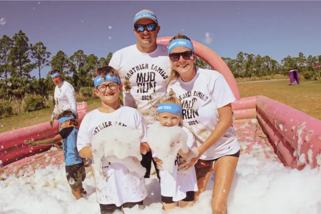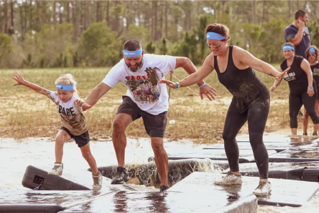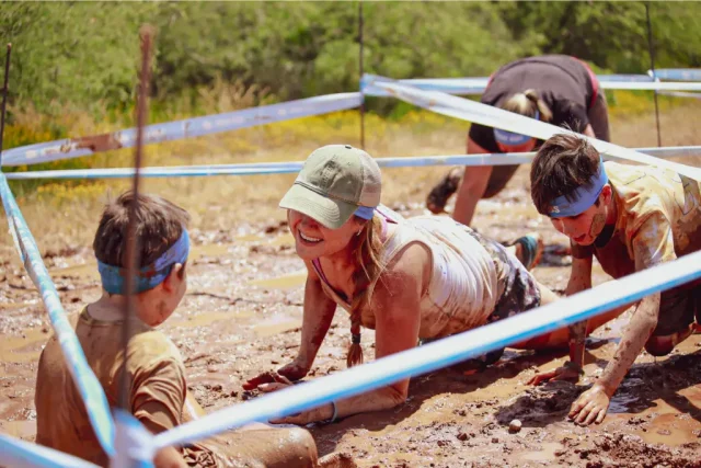 Muddy Kids is a 2 and 3 mile adventure event series for families and kids ages 5–17, with fun and challenging obstacles, mud, and entertainment for the whole family. We don’t focus on the fastest times or competitions; we focus on fun, so be prepared to run, walk, crawl, climb, slide, balance, and laugh your way along our course for an amazing muddy day out. Muddy Kids is the perfect event to reconnect, strengthen relationships, have fun, get active, get muddy, and bond as a family! Spectators are welcome at no additional fee; however, kids under the age of 16 must be accompanied by an adult. The event village is where they can cheer you and your kids on at the start and finish line, and explore the food stalls while they wait for you and your family to finish the course.Â